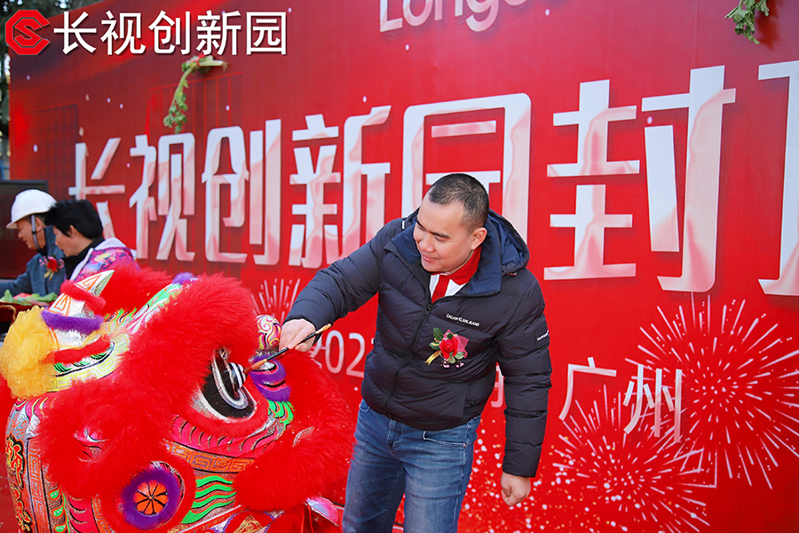 儀式上醒獅表演隊(duì)邀請(qǐng)了長(zhǎng)視科技總裁全紹軍和偉晉集團(tuán)董事長(zhǎng)毛米方為醒獅點(diǎn)睛,并邀請(qǐng)了長(zhǎng)視科技總裁全紹軍與副總裁陳明偉接青,象征著長(zhǎng)視創(chuàng)新園吉祥如意,興旺發(fā)達(dá)。
