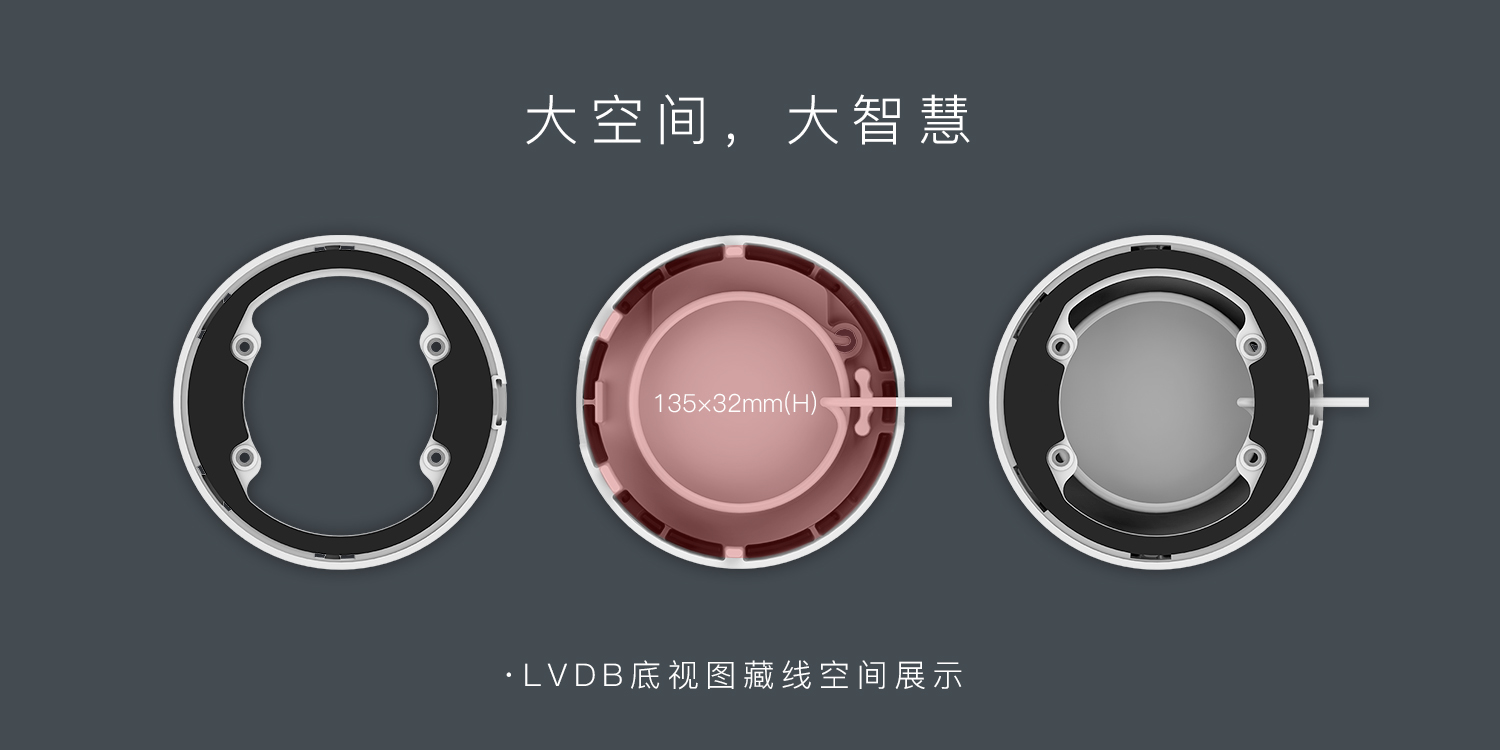 藝術(shù)與體驗(yàn)的融合,方可彰顯優(yōu)異的工匠精神。在LVDB監(jiān)控新外殼的設(shè)計(jì)中,底座的加高,能為線材提供135*32mm(H)的空間,藏于底座之下,美觀掌控,心有所動(dòng)。此外,線材外露的減少,還能減少與水的接觸機(jī)會(huì),增強(qiáng)其使用中帶來的安全性。
