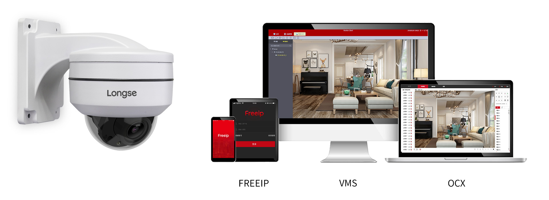 致力于使監(jiān)控工作更加便利,長視獨(dú)立研發(fā)的OCX\VMS\FREEIP的遠(yuǎn)程管理平臺(tái),
